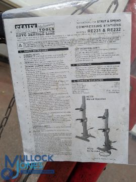 Automotive - Tools - Sealey Strutt & Spring Compressing Station RE231 and RE232 plus car jacks, draper stool - see images (5x items)