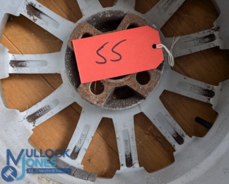 Automobilia - MG Rover 11 spoke 16" alloy wheels (4) 3x with tyres, 1x without, RRCOO2630XXX, made in England, 3x tyres sizes 195/45R16 and 215/40R16 - appear used but overall good, see images - well stored