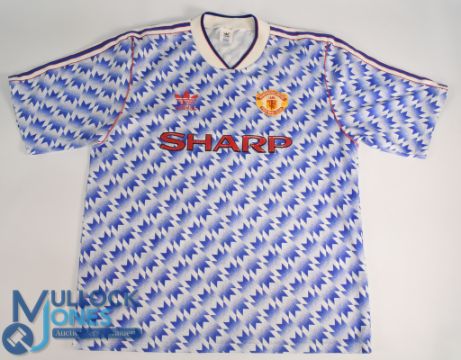 Manchester United 1990 away football shirt Adidas, Sharp, blue and white, short sleeve, size 42-44"