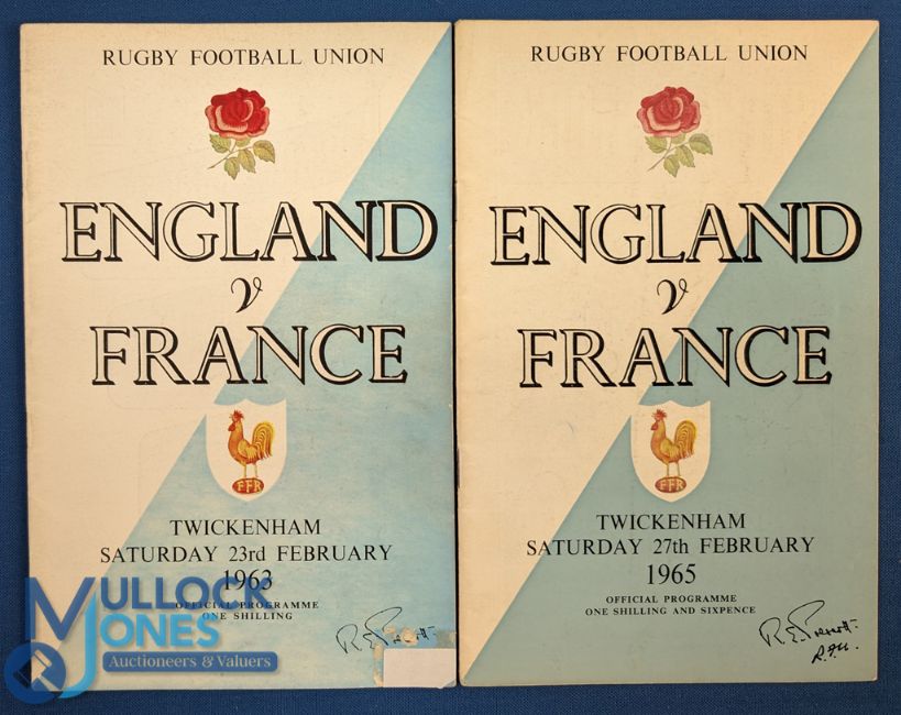 1963 & 1965 England v France Rugby Programmes (2): Substantial standard Sixties examples. G/VG