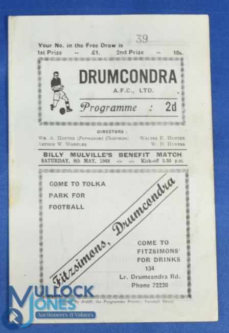 1948 Drumcondra v Charlton Athletic, Billy Mulville's benefit match programme 8 May 1948; fair/good. (1)