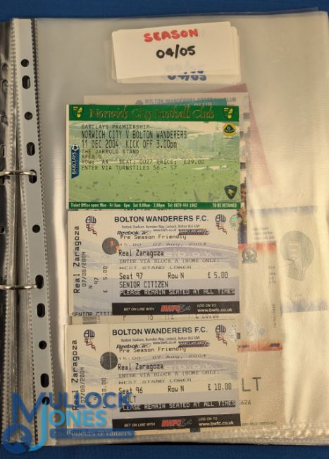 Football Tickets: Collection of Bolton Wanderers tickets 1986/87 - 2015/16 homes (35) and aways (64) plus 2003/04 Aston Villa v Bolton Wanderers Carling Cup s/f x 2, 2003/04 Bolton Wanderers v Aston Villa Carling Cup s/f, 1995 Coca Cola Cup final Liverpool v Bolton Wanderers, 1986 Freight Rovers Trophy final: Crewe Alexandra match tickets 2000s (8) plus Dynamo Kiev/Ukrainian and/or east European match tickets 1997/98 onwards (26); fair. (approx. 140 tickets in 1 Folder)
