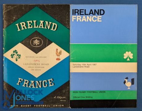 1965 & 67 Ireland v France Rugby Programmes (2): Different covers for each of these mid-60s Dublin issues. G/VG