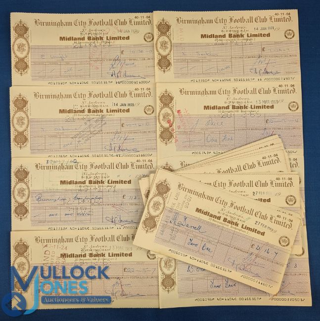Collection of Birmingham City Football Club bank cheques generally 1969-1971, each signed by S Morris director and AP Instone, secretary - good overall (35)