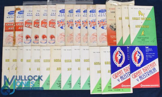 1948-82 GB v Australia Rugby League Programmes (16): Some duplication. 2nd tests 1948 & 52; 1st & 2nd 1951; 1st & 3rd 1956; all 3 tests in 1959, 1963; & 1967; at Leeds & Warrington 1973 & 1st 1982. G