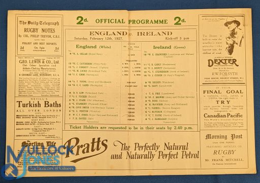 1927 England v Ireland Rugby Programme: Standard large foldout issue, G for age