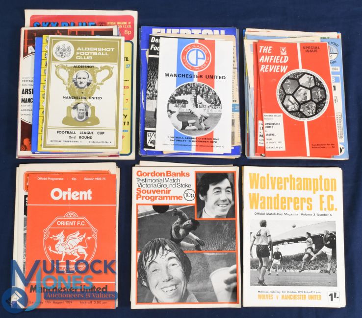 Collection of Manchester Utd away match programmes Aldershot 70/71 (FLC), Arsenal 70/71, 72/73, 73/74, Aston Villa 74/75, Blackpool 63/64, 70/71, Burnley 61/62, 62/63, 63/64. 68/69 69/70 (FLC), 70/71, 71/72, 73/74, Cardiff City 74/75, Carlisle Utd 77/78 (FLC), Chelsea 72/73 (Bobby Charlton last league game), 73/74, Coventry City 72/73 Crystal Palace 72/73, Derby County 69/70, 72/73, Everton 63/64, 69/70, 71/72, 72/73, 75/76, Huddersfield Town 70/71, 71/72, Hull City 74/75, Ipswich Town 72/73, Leeds Utd 70/71, 71/72, 73/74, 75/76, Liverpool 71/72, 72/73 75/76, Manchester City 70/71, 72/73, 73/74, 75/76 (FLC), 75/76 , 77/78, 78/79, Newcastle Utd 72/73, Norwich City 72/73, Notts. County 74/75, Notts. Forest 74/75, Oldham Athletic 74/75, Orient 74/75, Preston NE 71/72 (FAC), Sheffield Utd 72/73, Sheffield Wednesday 69/70, 74/75, Southampton 72/73, Stoke City 70/71, 71/72 (FLC), 71/72 FLC 2nd replay), 71/72, 71/72 (FAC), 72/73, 73/74 Banks testimonial, 75/76, Spurs 73/74 WBA 70/71, 72/73, 74/75, Wolves 70/71, 71/72, 72/73, 72/73 (FAC), 73/74, 75/76; fair/good. (75)