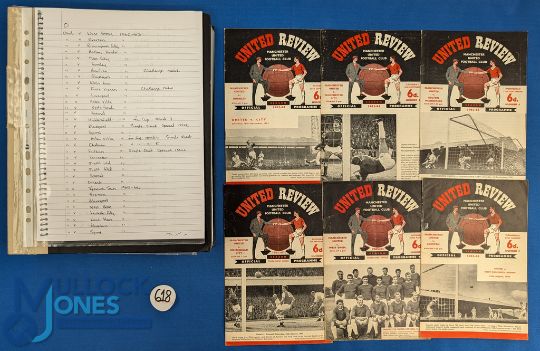 Collection of Manchester Utd home match programmes to include 1962/63 league homes (21) including Arsenal (22 December 1962 abandoned) less Leicester City (no. 23) missing; also Benfica (friendly), 1st Vienna (friendly) plus FAC Huddersfield Town, Aston Villa, Chelsea (8 have tokens removed) total (26); 1963/64 league homes (21) plus FAC Bristol Rovers and Sunderland: (6 have tokens removed) total (23); 1964/65 league homes (21) plus Leicester City (16 December - postponed) plus FAC Chester, Stoke City, Burnley (11 have tokens removed) total (25), fair. (Contained in one album).