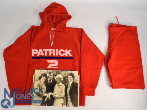 Kevin Keegan's 1980 'Patrick' Tracksuit - presented to Southampton's new signing in 1980, used in conjunction with him promoting Patrick's new football boot range. Later given as a gift to his close family friend Sue McGloin, who worked for the THF in London and who looked after the England football squad and management team when playing at Wembley between 1974-1990. The tracksuit, top with hood and trousers in red with Patrick to front, labelled internally '44 174', t/w a signed promotional Patrick photograph of Keegan, FA Documents on match day schedules, programmes, numerous signed THF headed notepaper by the squads, plus personal photographs of Keegan and Sue, her family. (Qty)