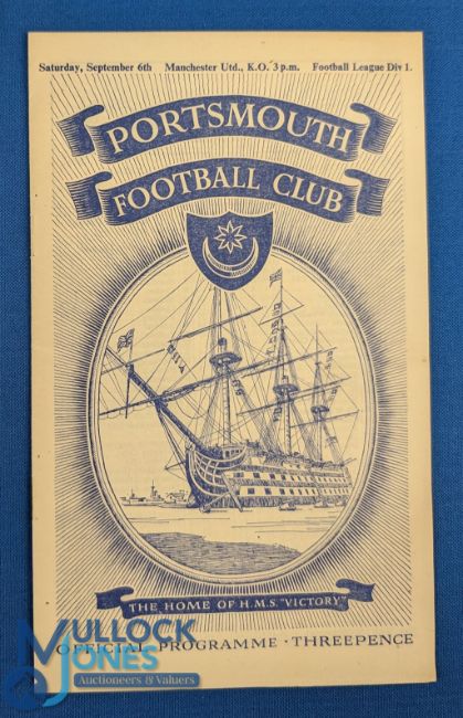 1952/53 Portsmouth v Manchester Utd Div. 1 match programme 6 September 1952; good. (1)