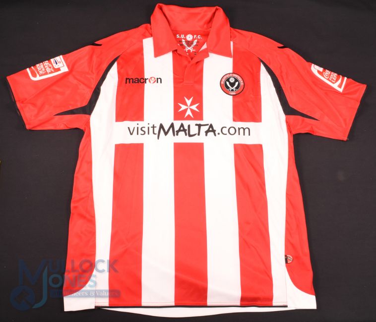 2009/10 Chris Morgan No 5 Sheffield United match worn home football shirt v Middlesbrough 16 Jan, in red and white, Macron/Malta, Football League shoulder patches, size L, short sleeve - obtained via team personnel