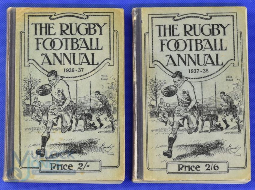 1936-7 and 1937-8 Rugby Football Annuals (2): Mid-30s pair from this long-running series of fact-heavy rugby annuals. G for age