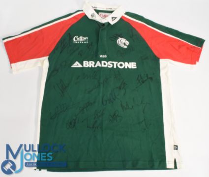 Early 2000s Leicester RFC Signed Jersey: Splendid unnumbered fully officially logoed short-sleeved issue signed by the squad, to include M Johnson, L Moody, N Back, A Healey, B Kay etc etc. Excellent