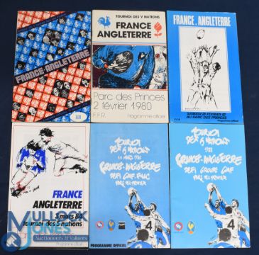 1978-1988 France v England Rugby Programmes (6): Unbroken run of six Paris issues v 'Les Rosbifs'. Splendid detailed editions, excellent