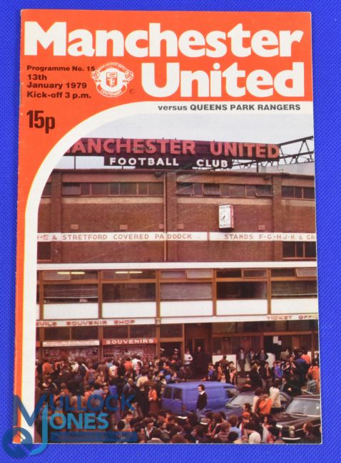 POSTPONED: 1978/79 Manchester Utd v Queens Park Rangers Div. 1 match programme, 13 January 1979 at Old Trafford