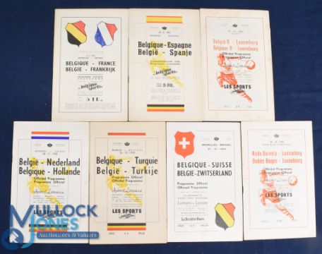 Selection of Belgium international match programmes 1950 France, 1951 Spain, 1957 Luxembourg 'B' international, 1958 Holland, 1958 Turkey, 1960 Switzerland plus 1956 Diables Rouges v Luxembourg; fair/good. (7)