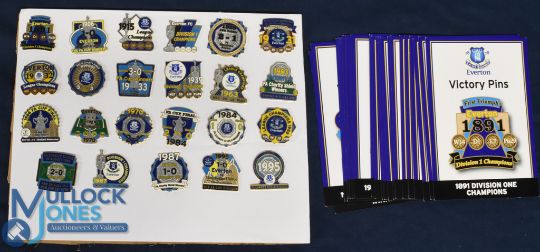 23x Everton Football Danbury Mint Victory Metal Enamel Pin Badges, with 23 victory cards