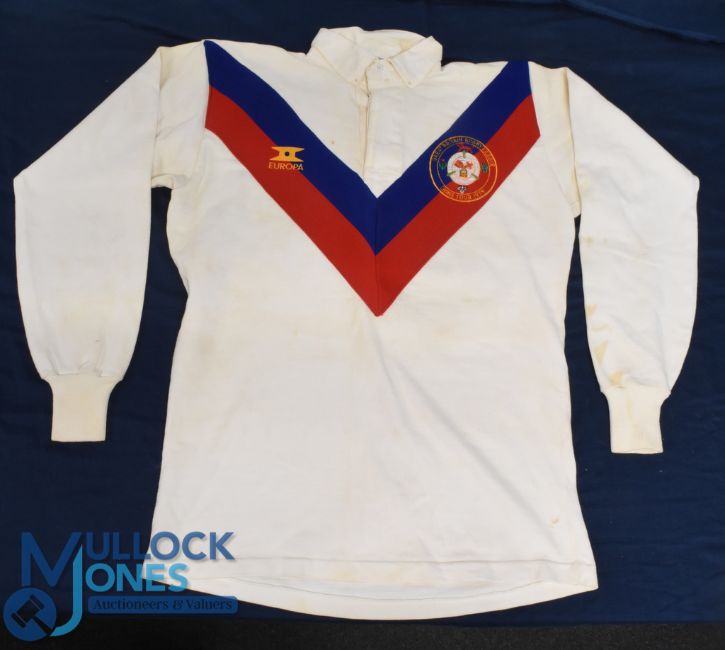 1979 British 'Lions' R League Tour Match worn Jersey: Lovely heavy traditional official issue white with red & blue 'Vs', attractive crest with four home nations' emblems, Europa make, no.15 to rear, tour number? VG