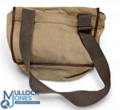 Hardy canvas and leather trout bag - canvas leather edged bag with one internal large pocket and 2 front pockets complete with straps having some wear all straps are strong