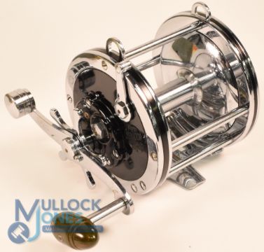 Penn Senator 4/0, 113 Sea Fishing reel, made in USA, star drag, free spool, on/off check, little used, complete with rod saddle clamp, spanner, oiler Penn catalogue No.18, in early box with decorative end panel