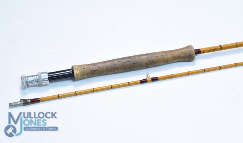 Hardy "The Pope" Palakona 10' 2 piece split cane trout fly rod, No. N-R, agate butt/tip rings, burgundy close whipped intermediates, bronze lock fast ferrule, 9" shaped cork handle with alloy screw reel fitting and butt spear, fine, in MOB