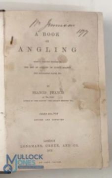1872 Francis Francis - "A Book on Angling" 3rd edition 1872, coloured illustrations, quarter leather binding with marbled boards t/w Fishing, Angling and Creel magazines from the sixties - ‘Fishing' The Magazine for the Modern Angler - 36 editions from 1963-1968 - 1963 x14, 1964 x10, 1965 x1, 1966 x2, 1967 x7 and 1968 x2 ‘Angling' Magazine x3 1964 x2 and 1965 x1 and ‘Creel' magazine x2 1965 x1, 1966 x1, fair/good condition