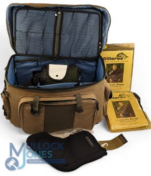 Large Airflow Fishing Bag, with multi pockets, and Velcro compartments, and webbing shoulder strap, contains the contents of Vision Airprene socks size XXL, 2x Gillaroo waterproof bug tops, and a nylon fishing vest. The bag is in fair used condition, would benefit from a clean