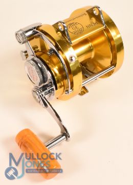 Penn International 30, Tournament reel, made in Pennsylvania, lever strike drag with preset, optional ratchet control, mint condition, complete with rod saddle clamp, tools, oiler, Penn bag, handbook and maker's outer box.