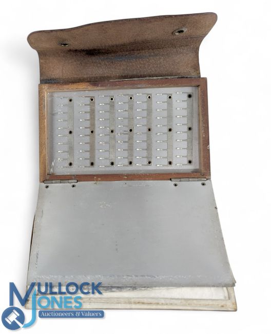 Unusual Richard Wheatley leather Fly Wallet, with a wooden and aluminium inner box - R Wheatley stamped to leather case