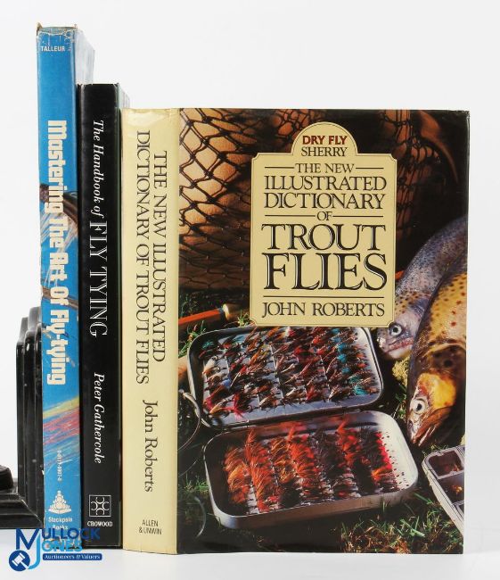 11x Fly Fishing Books: to include Fly-Tying Illustrated Wet & Dry Patterns, signed copy and dedication, Freddie Rice 1981, The Caddis and The Angler Larry Solomon Eric Leiser 1981 +D/J, The World's Best Trout Flies John Roberts 1994, Art of Fly-Tying Richard M Talleur 1979, and The Versatile Fly-Tyer Dick Talleur, signed with dedication, The Handbook of Fly-Tying Peter Gathercole 1991, The New Illustrated Dictionary of Trout Flies John Roberts 1986, Mastering the Art of Fly-Tying Richard W Talleur 1979, Trout Flies of Stillwater John Goddard 1977, Stillwater Flies How and When to Fish Them John Goddard 1989, Trout Flies of Britain and Europe John Goddard 1991, 1st edition. (11 - box)