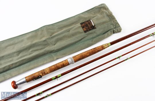 Hardy Alnwick whole cane fly rod G10.56, 12' 3pc with spare tip (tip ring crushed), alloy sliding reel fittings, agate lined butt/tip ring, twist lock joints, looks very good in original Superfast cloth bag