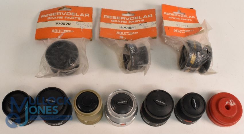 A collection of Abu new and used spools, as follows: New 970270, 970354, 970224. 4x Cardinals size 3, 4, 2x 5. 1 EN4R. Ultra Cast size 4. Closed face in holder. (10)