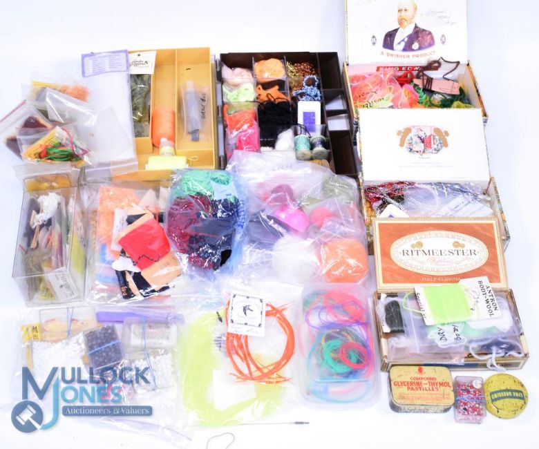 A large collection of fly-tying material, to include yarn, wool, beads, dubbing and flash. Too much to list, see photo