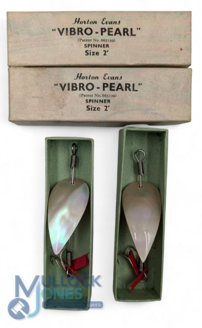 Vintage Boxed Pair Horton Vibro Pearl Spinner Lures size 2 - unused