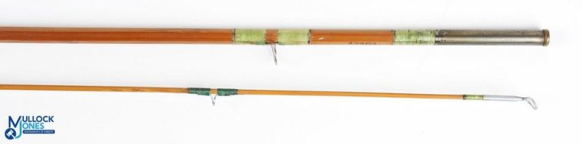 Partridge England F285 split cane trout fly rod 8ft 6" 2pc line 7#, alloy down locking reel seat, lined butt ring, cloth bag, tidy