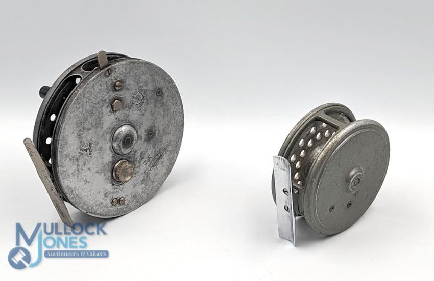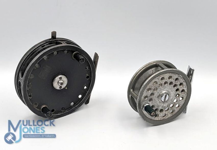 C Farlow & Co, London 4" trotting reel, side lever check, backplate brake tension adjuster and Farlow The Grenaby 3" alloy dry fly with fixed check and smooth plated foot. (2)