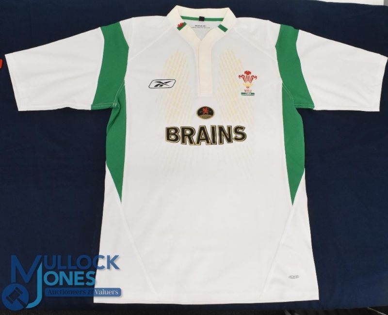 2005 White Wales no.3 match-prepared Rugby Jersey: Unnamed loose-head prop's short sleeved issue. Brains sponsor, Reebok make. Immaculate