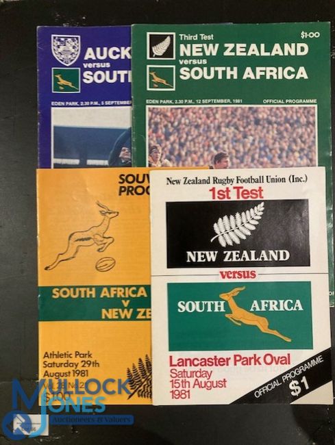 1981 New Zealand v S Africa Test etc Rugby Programmes (4): All three tests plus the game v Auckland. G/VG