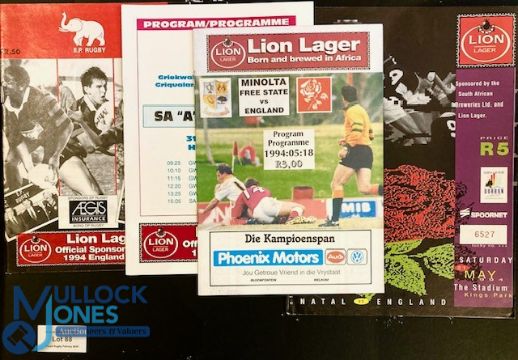 1994 England in S Africa Rugby Programmes (4): v Orange Free Sate, Natal, Eastern Province and S Africa 'A'. Less often seen. Excellent