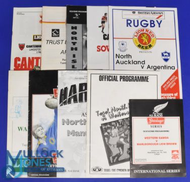 1989-95 Tourists in NZ Rugby Programmes (10): Argentina v Canterbury, Waikato, N Auckland & Wairarapa/Bush 1989; N Island v Canada 1995; Marlborough 1993 & N Harbour 1998 & 1990 v Western Samoa; and Canterbury and Otago v Soviet Union 1991. G/VG