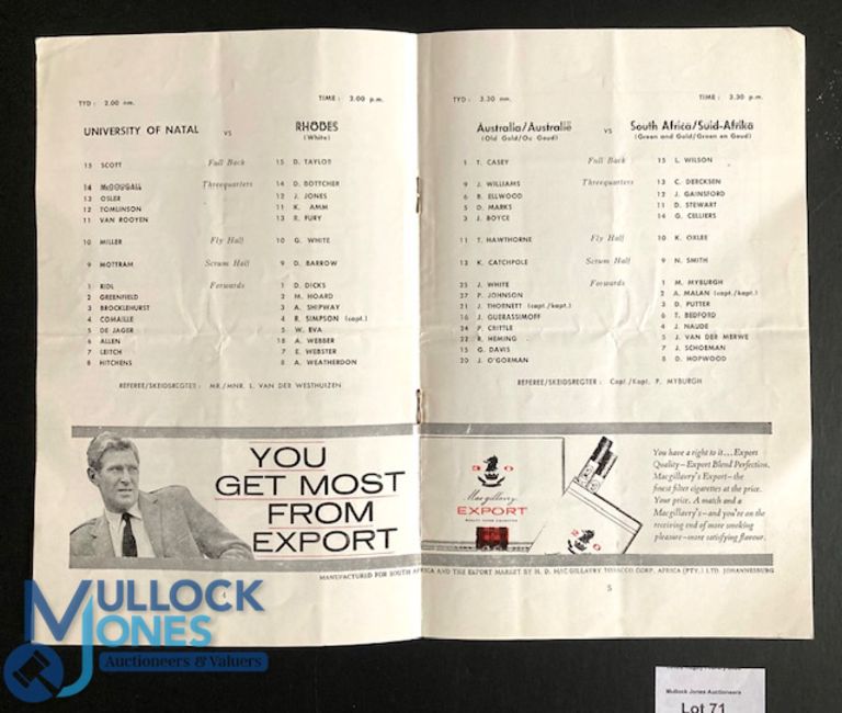 Very scarce 1963 S Africa v Australia 4th Test Rugby Programme: No apparent cover on this 8pp Eastern Province issue from Port Elizabeth: it may be the insert for the SA Rugby Annual edition? VG