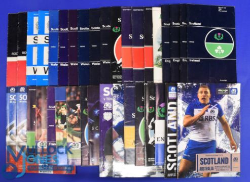 1969 on Mostly Scotland Home Rugby Programmes (c.35): 15 v Wales, 5 v England, 4 v Ireland, 2 v France & v Australia, one each v Italy, Fiji, Samoa, Argentina, Tonga & Japan: plus Ireland v Wales 88. Minor duplication. Good or better
