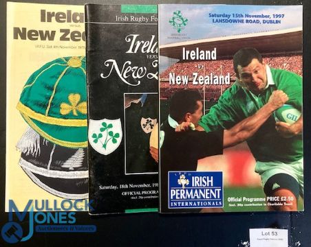 1978, 1989 & 1997 Ireland v New Zealand Rugby Programmes (3): 20 years and three Lansdowne Road meetings for the Greens and the All Blacks. VG