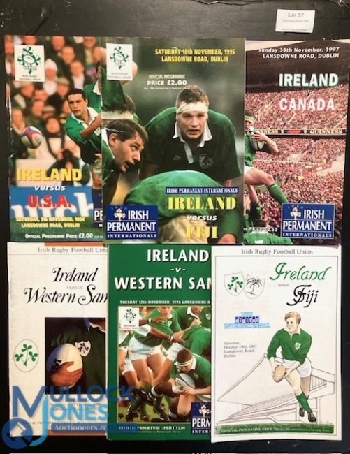 1985-97 Ireland v Other Overseas Visitors Rugby Programmes (6): v Fiji 1985 & 1995, v W Samoa 1988 & 1996, v USA 1994 & v Canada 1997. All VG or better