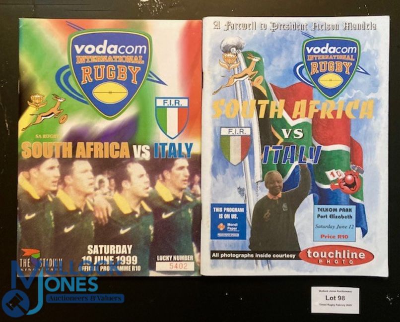 1999 S Africa v Italy Test Rugby Programmes (2): Both 1st & 2nd Tests at Port Elizabeth & Durban. Exc