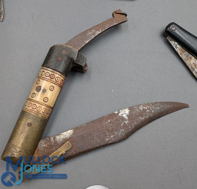 Collection of pocket knives, penknives and razor blade: 13 assorted penknives with noted Jack Pyke knife - an unusual period trial folding knife with bone handle, and a display card of 10 packets unused razor blades. Collection Only