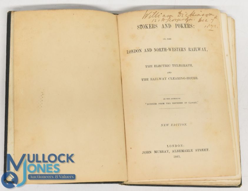 Railways - Books (2) to incl early Bound Volume of "The Railway Magazine" 1897 - Volume 1. The 6 monthly editions bound by the publishers totalling 607 pages and over 200 photographs and illustrations. Detailed articles about new developments; Express Trains, new Locomotives, Carriages, Dining Cars and Royal Trains. Articles about both British and overseas railways, mountain railways, bridges and track, Europe. India etc. Bound in cloth binding, size 7 1/4" x 10", t/w Stokers and Pokers or The London and North Eastern Railway, The Electric Telegraph and The Railway Clearing House, 1861, a 224 page book interestingly describing this the largest railway company in Britain also the Electric Telegraph system and working of the Clearing House for railways etc. In cloth board cover, size 5" x 7¼"