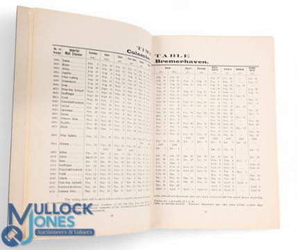 An attractive Publicity Booklet for Travel to India and Ceylon by Shipping Company Norddeutscher Lloyd 1908. Has 64 pages with 28 photographs of their ships and places in India and Ceylon. Also, large fold out map extensively detailing their ships, passenger rates, Railway Fares in India, tours and places to visit etc. Printed in fine semi-gloss paper in decaled card cover with tipped in illustrating on front cover, size 4¾" x 7"