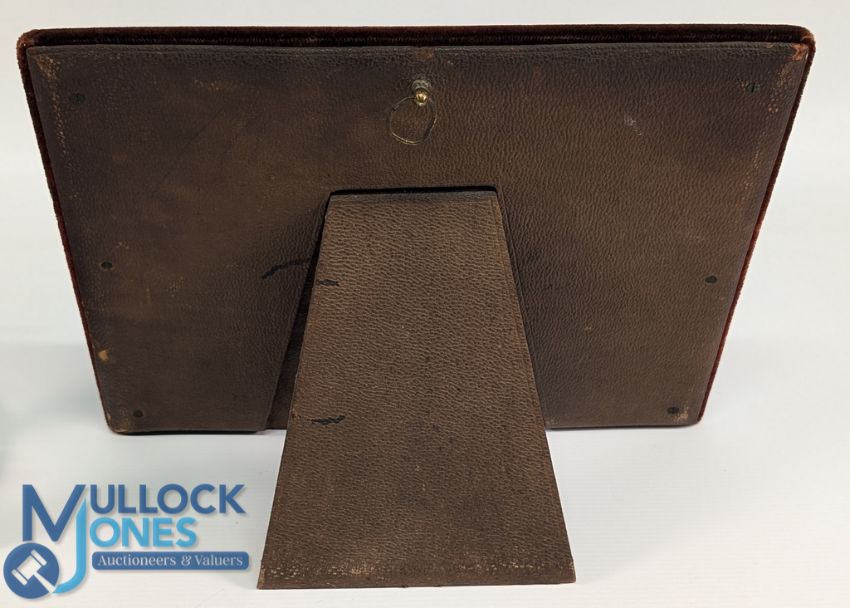 Ceramic Fishing Scene Plaque Tile, in a period velvet frame - printed image - unnamed maker - size #27cmx 32cm
