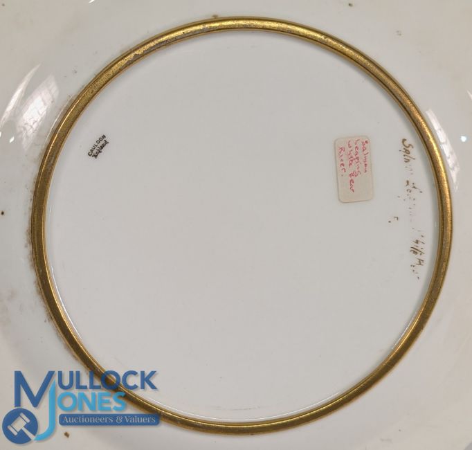 Fine Cauldon Painted Leaping Salmon White Bear River signed by signed J Birbeckson, 26 cm diameter, good condition